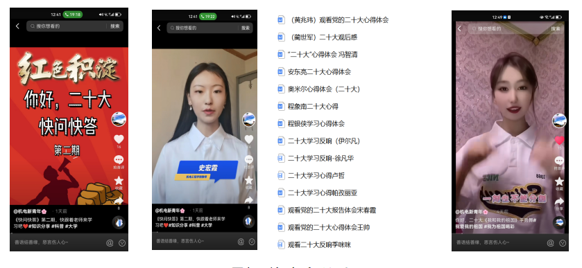 为深入学习贯彻党的二十大精神,机电工程学院党总支组织开展党的二十大精神系列学习活动。教职工通过多种方式收听收看大会直播,结合工作实际撰写感想体会。通过抖音平台开展快问快答活动,还利用平台组织学生发布“我和我的祖国”手势舞,传递和表达爱国之情。