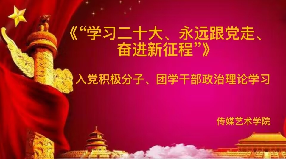 10月21日,传媒艺术学院党总支组织开展党的二十大精神专题学习教育活动,全体教职工、入党积极分子、全体团学干部以及2021级、2022级班委参加学习。参与活动的人员一致表示要认真学习贯彻党的二十大精神,踔厉奋发,勇毅前行,团结奋斗,在火热的实践中贡献青春力量。
