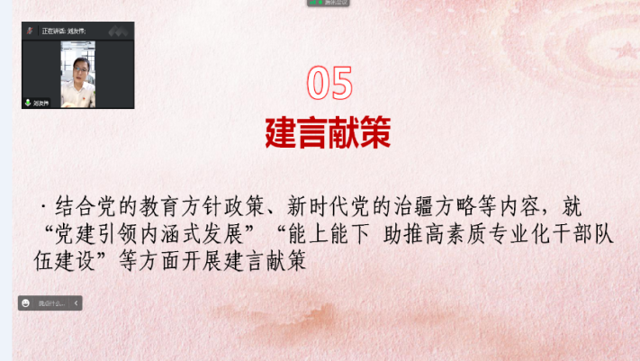 各党组织深刻学习领悟党的二十大精神,结合职业教育有关内容,围绕“党建引领内涵式发展”“创新育人模式 促进学生全面发展”“能上能下 助推高素质专业化干部队伍建设”等方面进行建言献策。组织人事部党支部党员根据工作实际,深化加强支部基础建设、人才培养和考察、人才引进等方面的思考,做好工作谋划,助推学院内涵式发展。建筑工程学院党总支针对学生培养深入思考,并表示要强化学生思想政治建设,争取培养更多的技术技能型人才,为新疆未来的建设添砖加瓦。