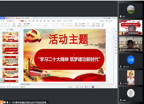 机电工程学院党总支10月16日起连续组织班级收听收看党的二十大开幕会盛况直播,并组织党员进班级宣传宣讲,引导学生学习领会党的二十大精神、树立伟大理想抱负,为中华民族伟大复兴的中国梦不懈奋斗。传媒艺术学院组织党员干部对学生进行党的二十大精神的宣讲,不断铸牢中华民族共同体意识,推动学习宣传贯彻党的二十大精神走深走实。