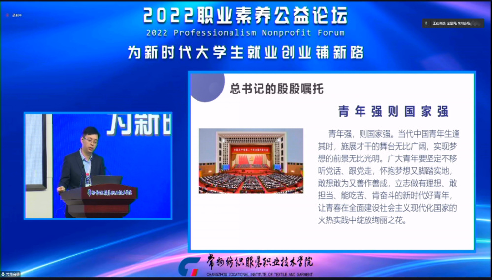为加强援疆交流与合作,常州纺织服装职业技术学院邀请我院联合参与发起成立职业院校职业素养教育校际联席会,共同推动大学生职业素养发展。11月8日,在高校毕业生就业协会和全国工商联人才交流服务中心的指导下,由常州纺织服装职业技术学院承办的2022职业素养公益论坛在常纺召开,我校全体领导班子成员、学生处、招就中心和二级学院全体学工干部、班主任等参加本次校际联席会议线上启动仪式暨论坛。
